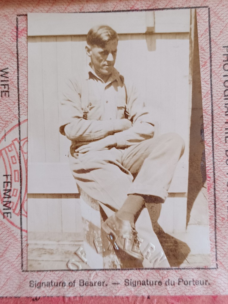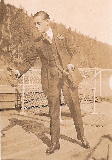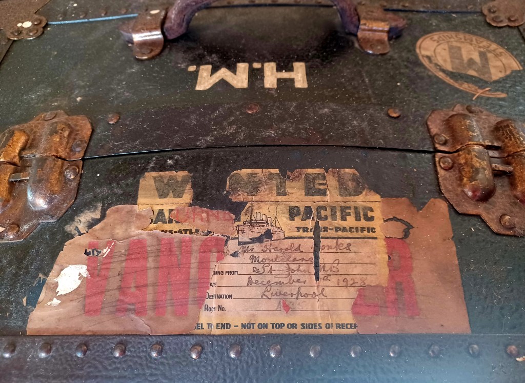 When not in his work boat gear, Harold was a natty dresser — he needed something fitting to carry his garments. A wardrobe trunk was a popular choice of the time for the steamship traveller.