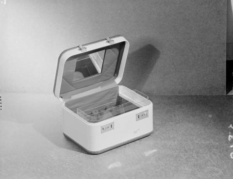 Here’s a 1947 image of a Travelgard brand train / cosmetic case. My mom – Harold’s daughter – was given a similar looking Travelgard case in the 1950s. The exterior was ivory and interior was lined in a butterscotch brown satin material. The case lasted well into the 2010s, used for tent trailer camping.