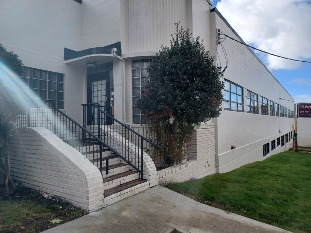 In 1946, Dominion Construction was awarded a contract to build a $50,000 addition to the Vancouver Trunk & Bag Ltd. factory. “It will be a two storey reinforced concrete structure, and when completed will employ 130 people.” (Sun January 19 1946). Here’s the building, when I visited the area in November 2025.