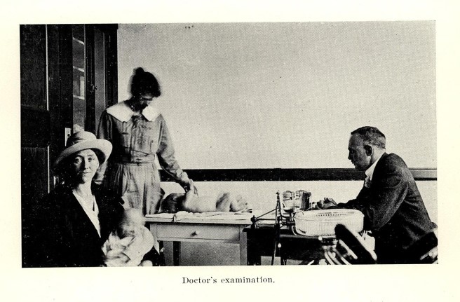 Starting in 1911, all British Columbia school children had mandatory medical inspection. See The Health of the Saanich School Children. Soon, a picture of children’s health had emerged. In July 1914, Walter Bapty, the acting Secretary of the Provincial Board of Health, noted: “It must be remembered that the greatest number of defects occur with the junior children, and a new lots of young children not previously examined come into the schools every year. Medical inspection should therefore commence at infancy and not merely after the child enters the school. From a public health point of view, medical inspection of school children is only part of the whole, the whole being the care of the child from the cradle to adult life.”