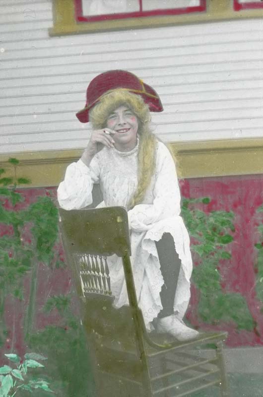 In 1902, Percy’s brother Edwin and family arrived from London, and nieces Dorothy and Ivy were constant visitors to the house. From 1908-1918 my great-grandmother Dorothy Lawrie was “housekeeper” to her uncle Percy Lawrie and Chris Hollyer at their home on William Street, and later Suffolk Street, in Victoria West. The job was apparently fairly easy — according to her daughter she hired a Chinese servant to do the heavy work and she had lots of time for socializing and acting in amateur dramatics. During this time, Dorothy was a willing “model” in many of Chris’ posed photos – Dorothy in bonnet in a “country” scene or in a fancy dress costume ready for a masquerade.