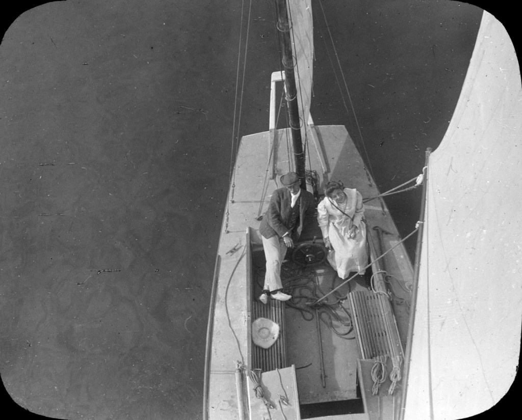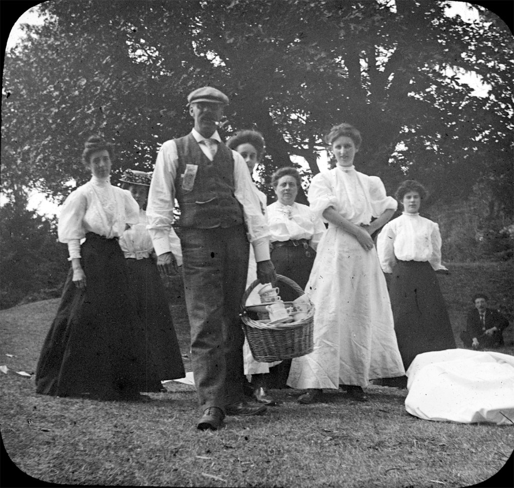 Hollyer grew up in an artistic family in London and obtained professional qualifications as a photographer. In Victoria, he used his camera in an amateur capacity. His close friends, the Lawrie family (my Grandpa’s family) were constant subjects of Hollyer’s camera on picnics by the Gorge and sailboat rides in the Strait of Juan de Fuca. Hollyer made over 200 negatives into glass slide images to be viewed through a lantern projector. In 2010, our family, who had inherited Hollyer’s slides, donated them and the projector to the City of Victoria Archives.