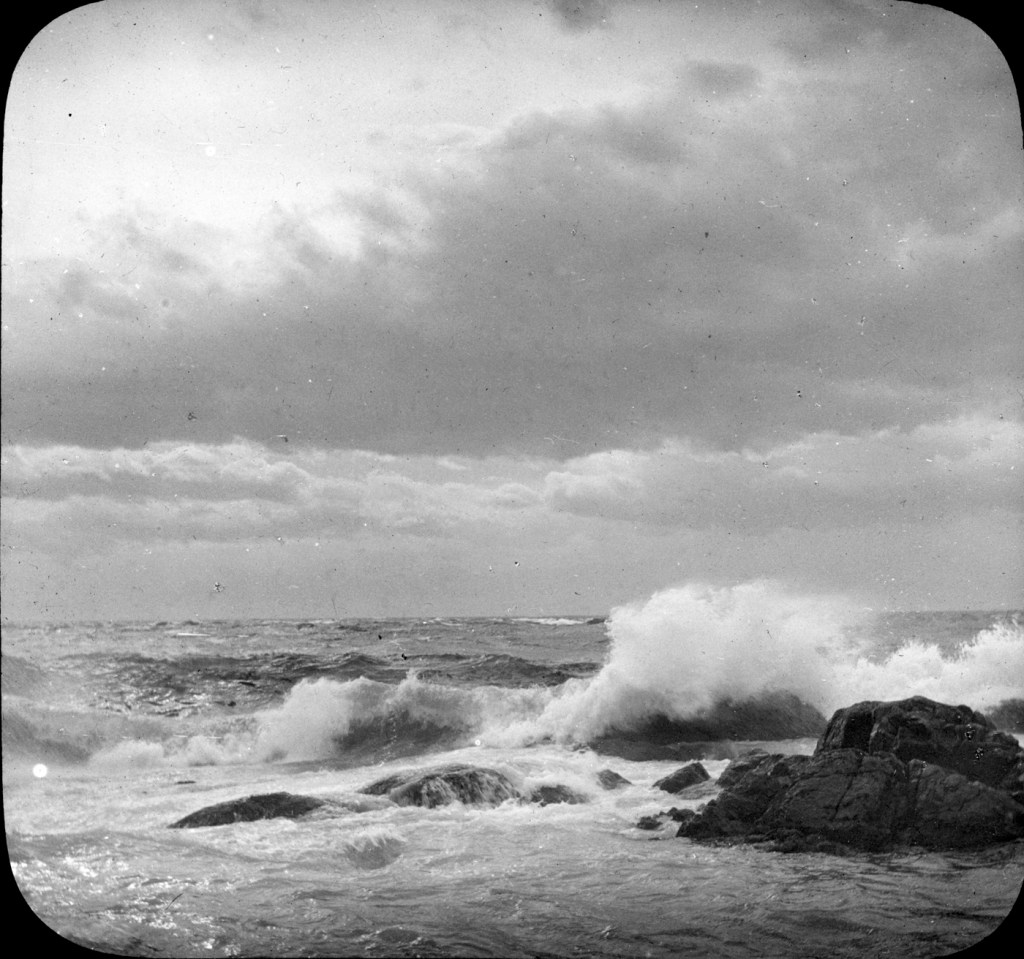 At the May 1 1922 Arts and Crafts Club meeting, the special subject for the evening was “A Trip Through the Old Country” illustrated with lantern slides by Mr. C.W. Hollyer.” It’s probable that Hollyer’s slide images came from his travels in England during WWI, though he may have also purchased sets of slides, like the Cathedrals, while over there. The “large views of clouds, landscape and seascapes were definitely his own images, though, as there are many “cloud / seascape” images in the glass slide collection.