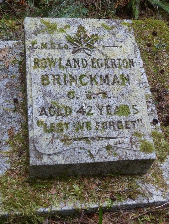 Rowland Egerton Brinckman was born in 1894 in Kilkenny Ireland. He moved to Vancouver in the pre-war years, and was working as an architect when he enlisted on December 1 1915. Brinckman served with the 2nd Battalion, Canadian Machine Gun Corps in France. In the 1920s, Brinckman settled in Clayoquot Sound at Ahousat and later in Tofino, where he was the night watchman at the Clayoquot Sound Livesaving Station (another “government job” given to men who had served overseas.