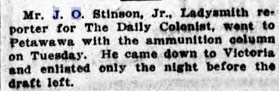 Note that on the same day this was said, page 2 of the April 21 1917 newspaper had a full length 2 and a 1/2 column list of casualties. Perhaps because the true toll of Vimy was now becoming apparent, the rate of volunteers slowed down. There were no more volunteers until one on April 27 1917 and one on April 30 1917.