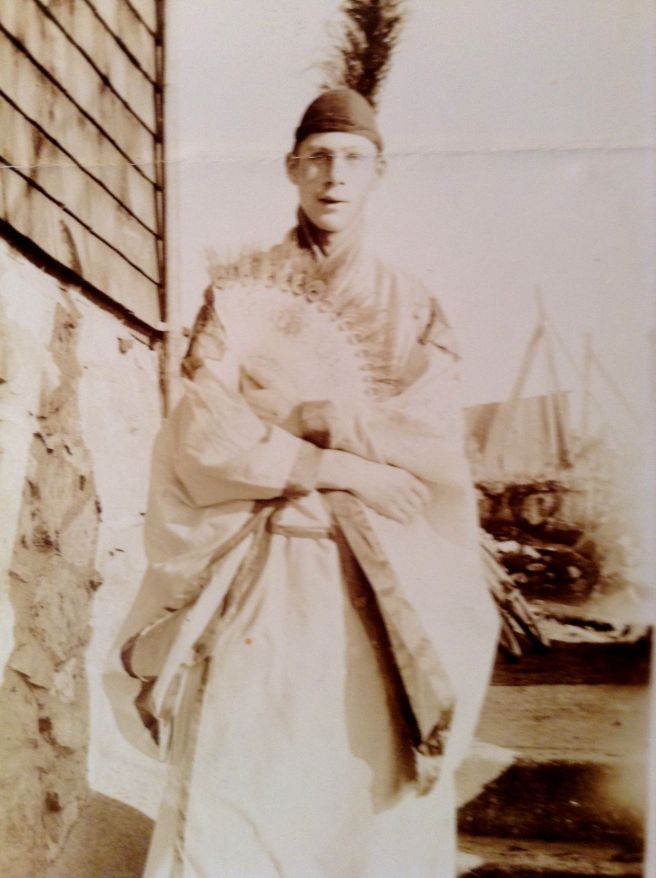This snapshot shows my grandpa Dick Warner in a Chinese or Japanese costume. I recalled he’d been in The Mikado back in the 1930s so I searched digitized Victoria newspapers (The Daily Colonist and Victoria Daily Times) for some mentions of “Richard Warner”. Turns out I was not far off in The Mikado idea. Amongst references to Dick at birthday parties and Boy Scout meetings (yes, this made for “news” in the old days!) I came across his name as a star of Princess Ju-Ju or The Golden Amulet, a Japanese Operetta in three acts, performed by Victoria schools in March 1936. Dick played the “peppery potentate” Emperor Hokipokitipitoptop.